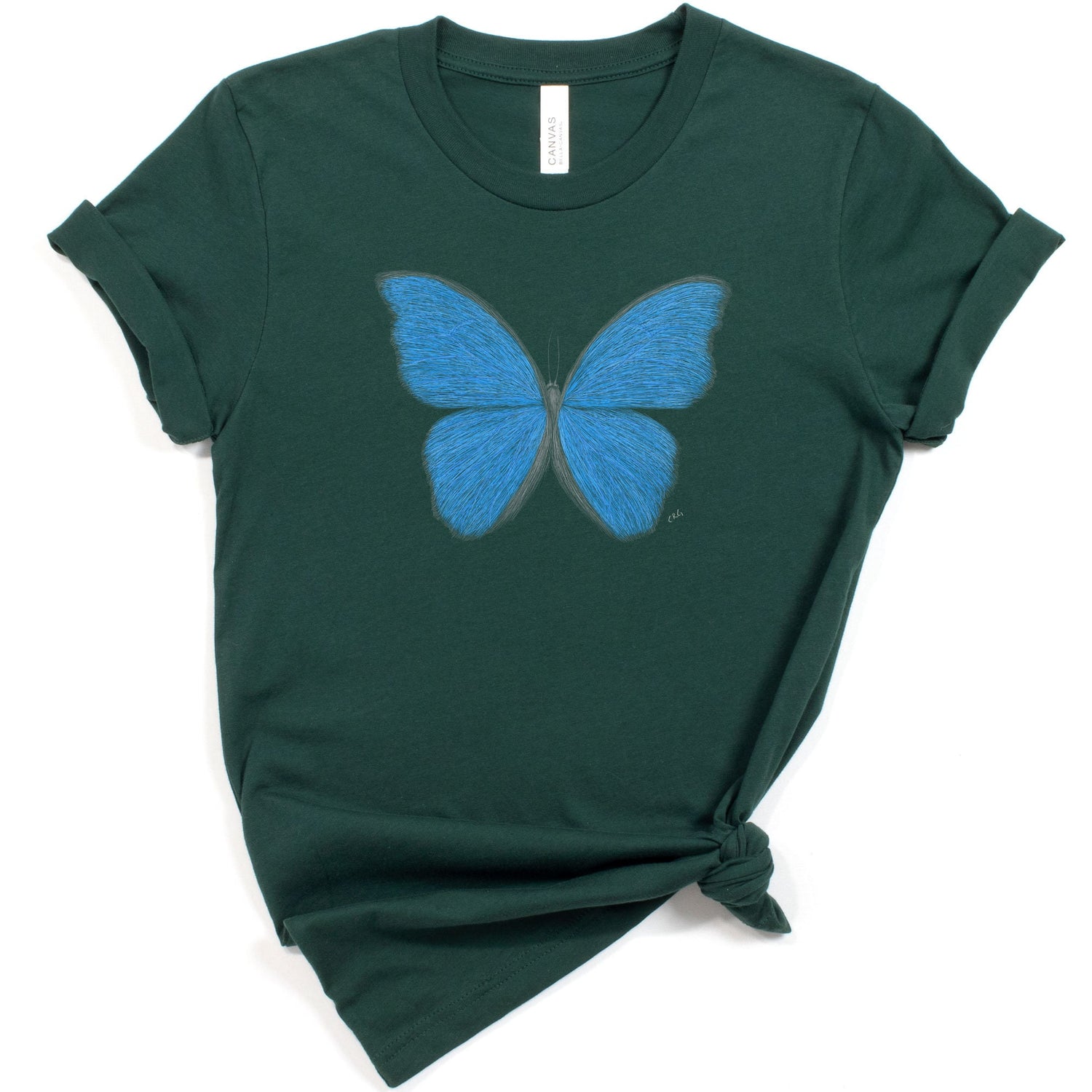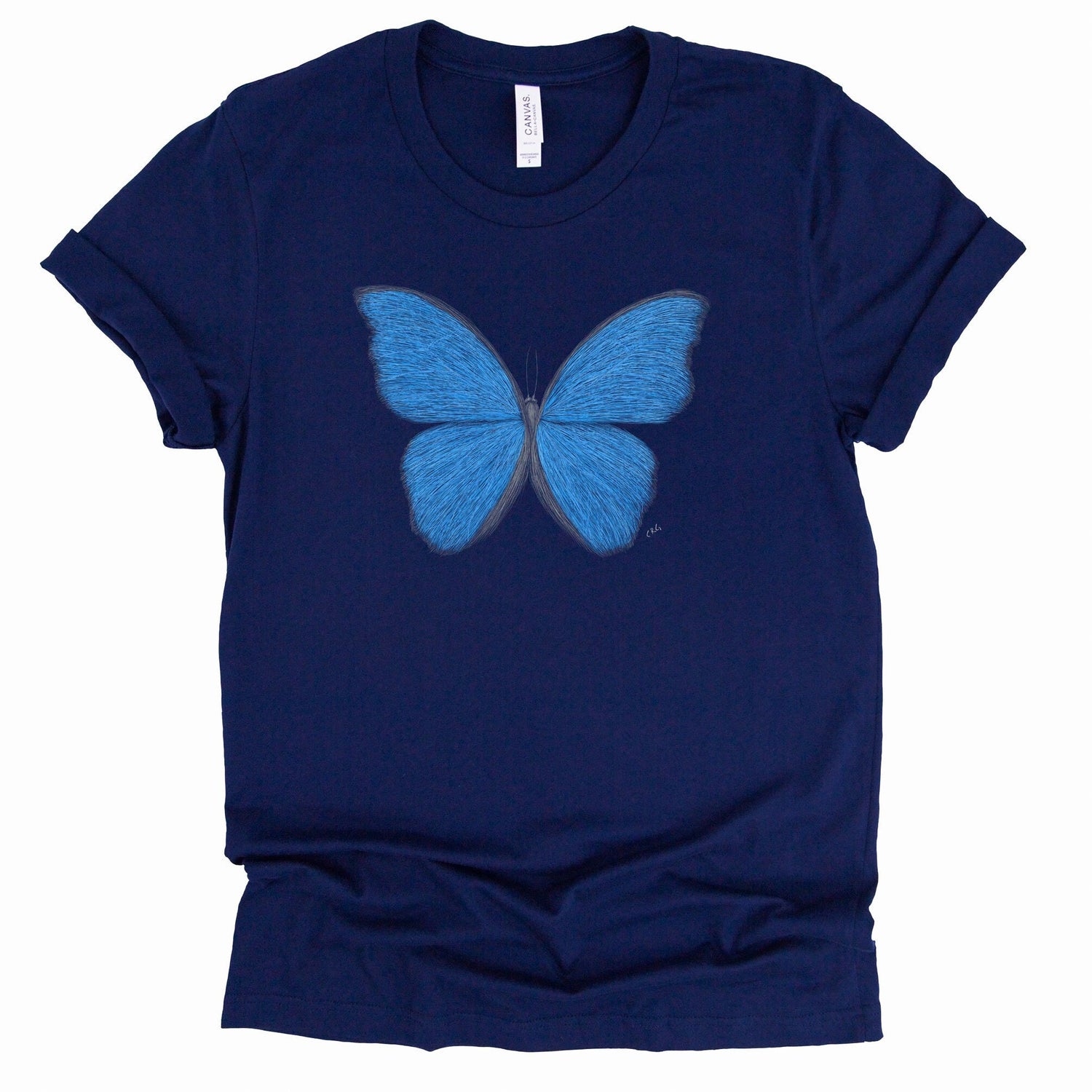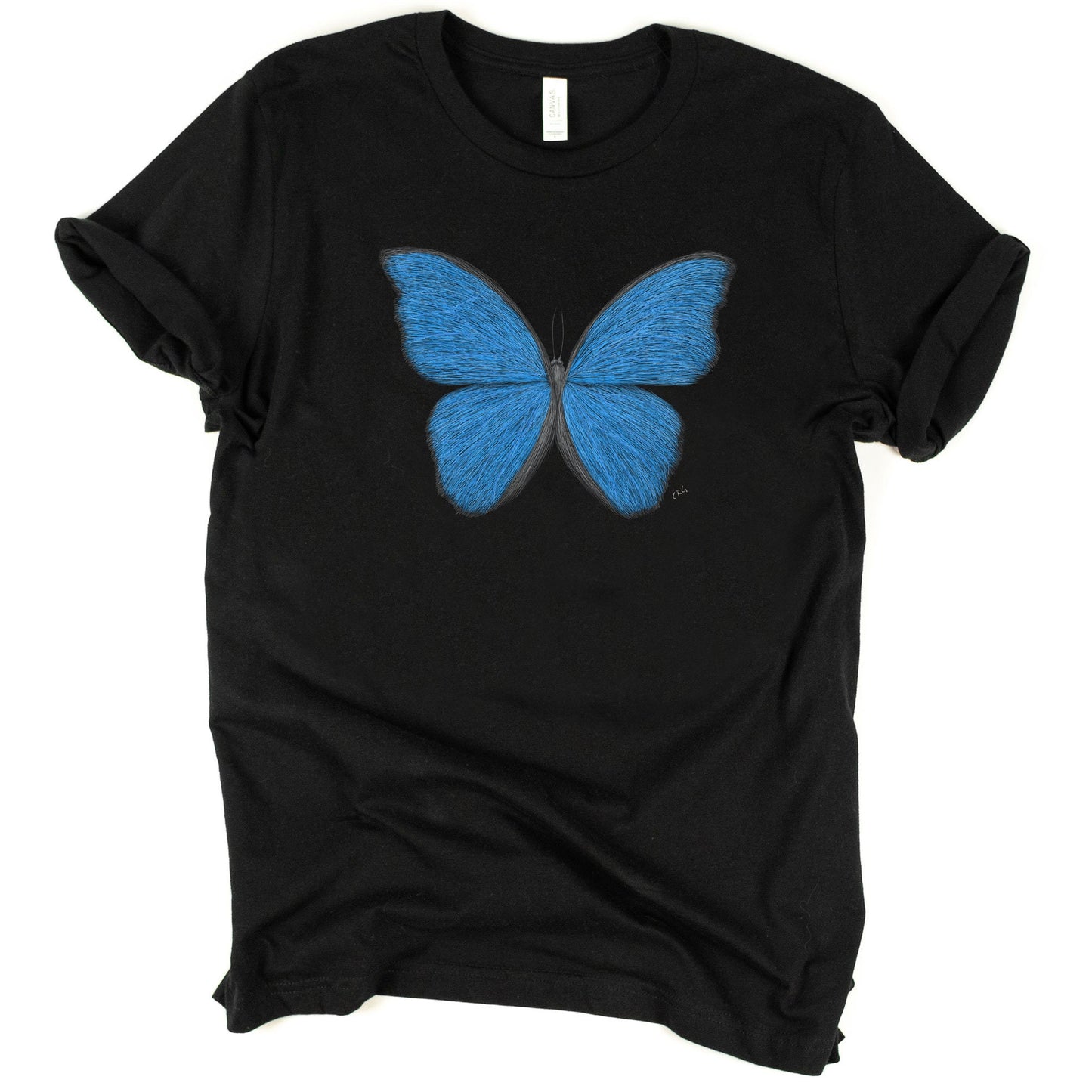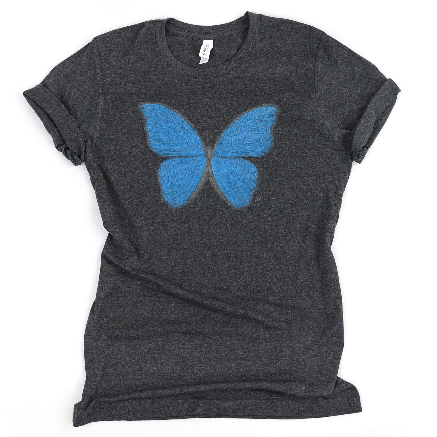 Did you know the blue morpho is one of the largest butterflies in the world with wings spanning from 5 to 8 inches? They are also associated with life, death, and rebirth. This shirt does not have a wing span, or wings for that matter, but it is still soft! Show your love for these beautiful butterflies without the worry of accidently rubbing the scales off their wings.