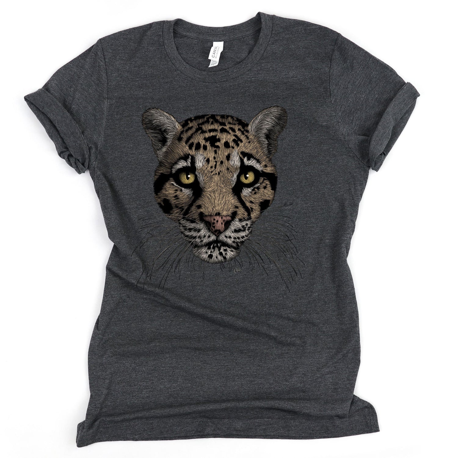 Did you know that clouded leopards are one of the best climbers in the cat family? Their ankles can rotate backwards, which allows them to climb down a tree head first, climb upside down, and even hang from its back feet. This shirt has no ankles for them to rotate, but it is still soft! Show your love for this elusive wild cat without the worry of losing them in the trees.