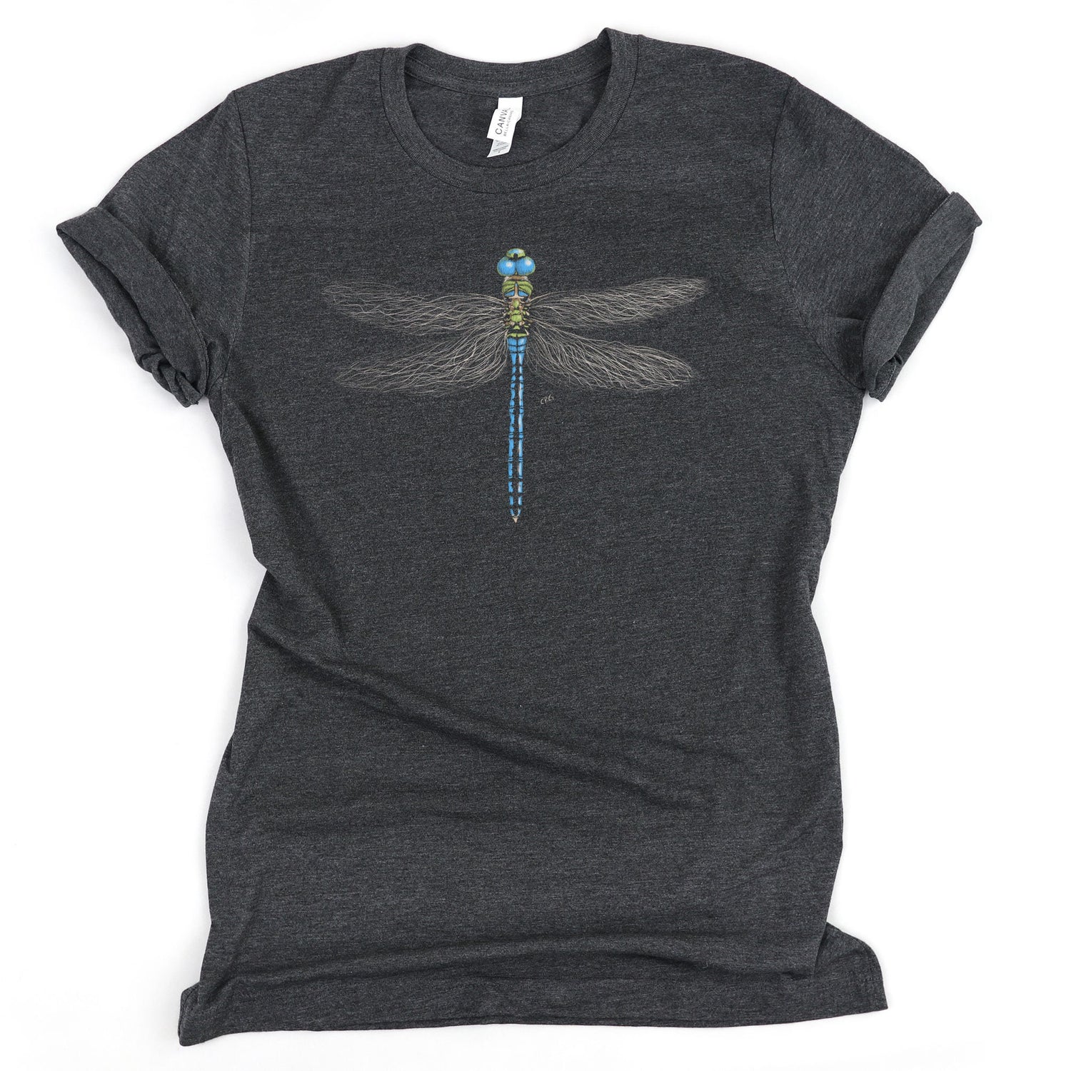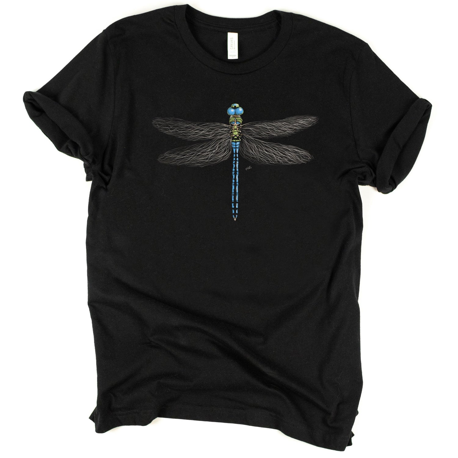 Did you know that dragonflies were some of the first winged insects to evolve, some 300 million years ago? Modern dragonflies have wingspans of only 1 to 5 inches, but fossil dragonflies have been found with wingspans of up to two feet. Luckily this shirt doesn't have a wingspan of any length, and is not 300 million years old! Show your love for these important insects without the worry of making sure it has enough to eat.