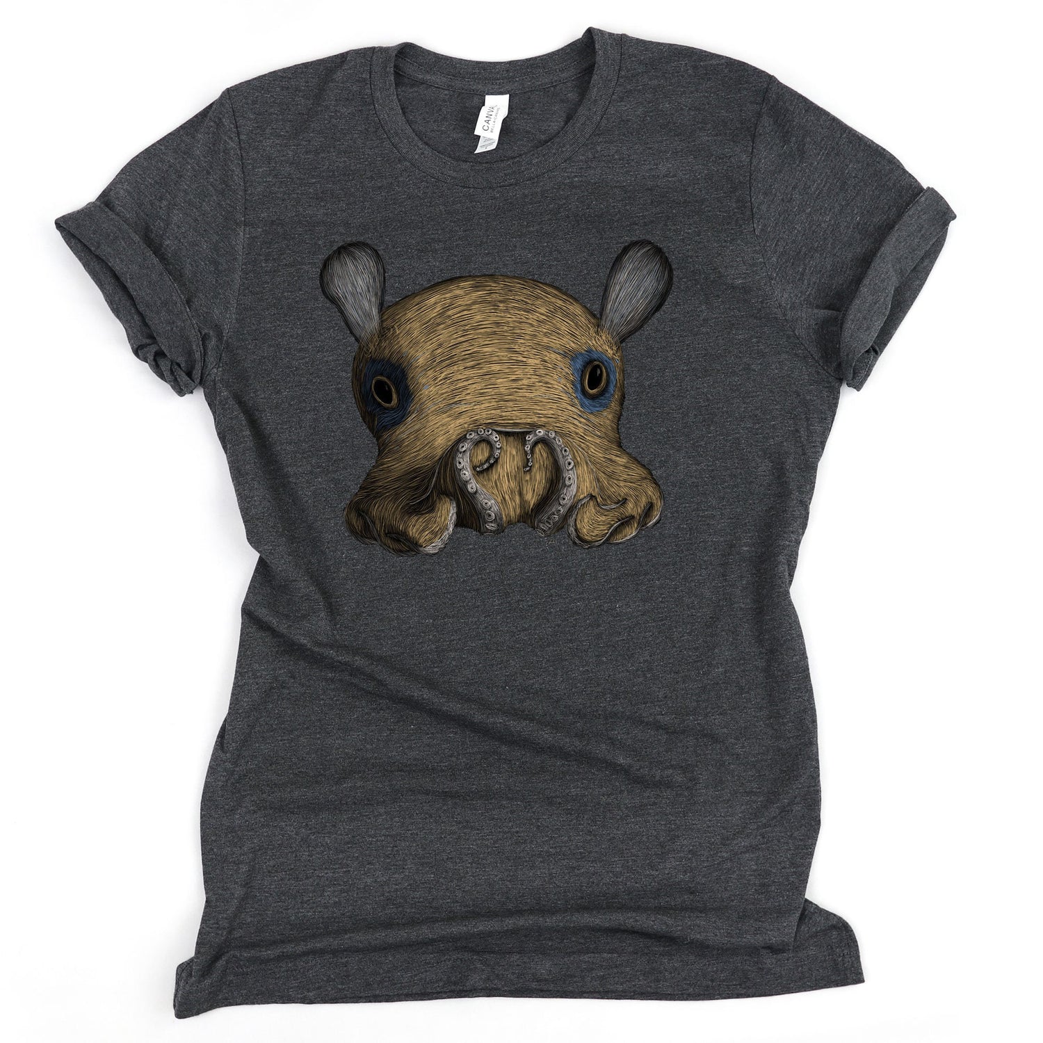 Did you know that scientists thought these octopuses were so cute that they initially wanted it's scientific name to be adorabilis? This shirt might not be as cute as a flapjack octopus, but it is still very soft. Show your love for these flappy octopuses without the fear of needing enough fish and worms on hand for them to eat.