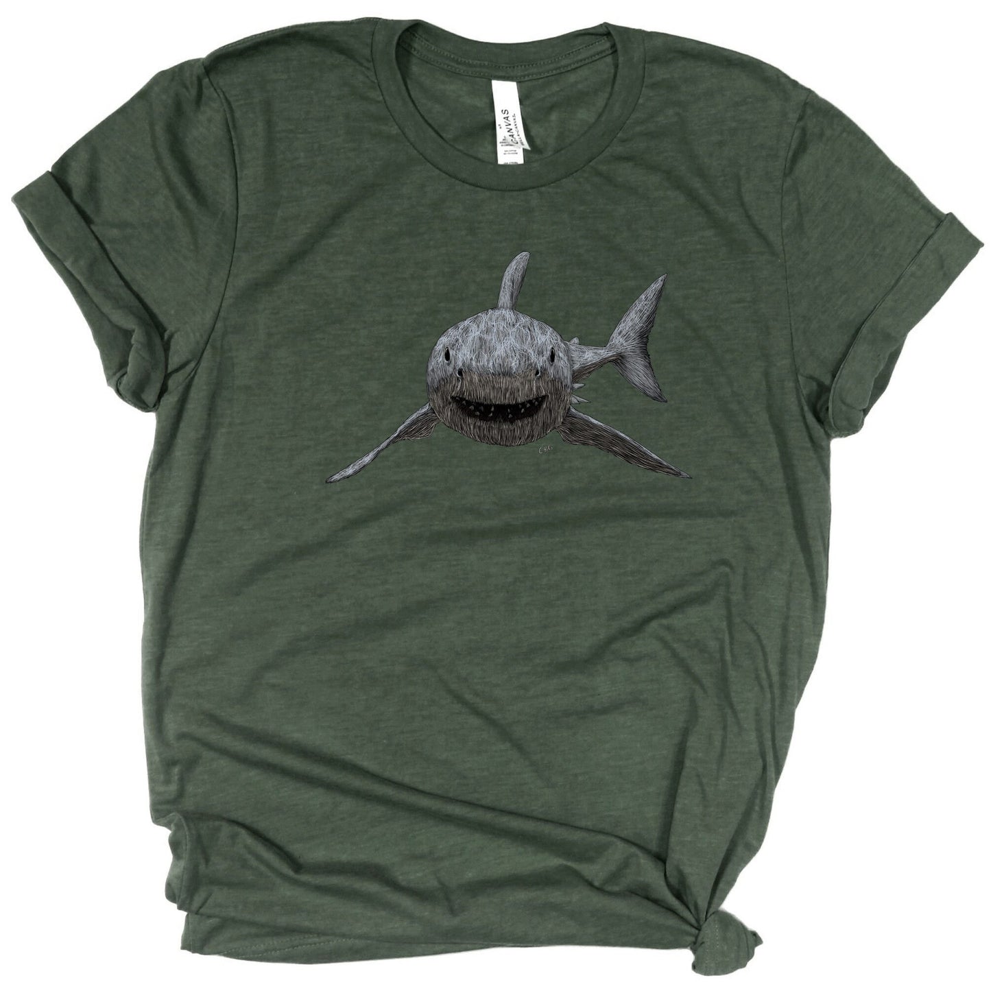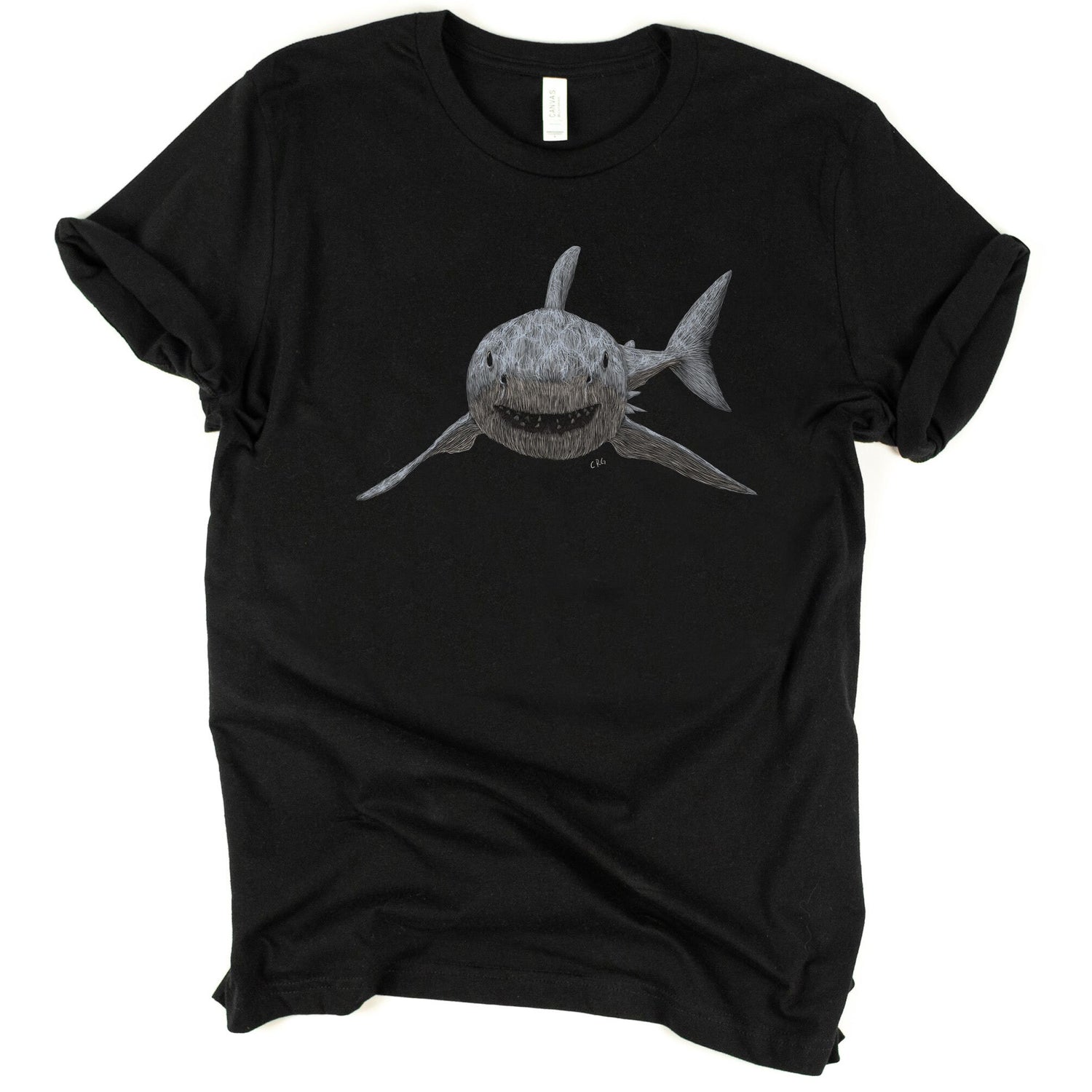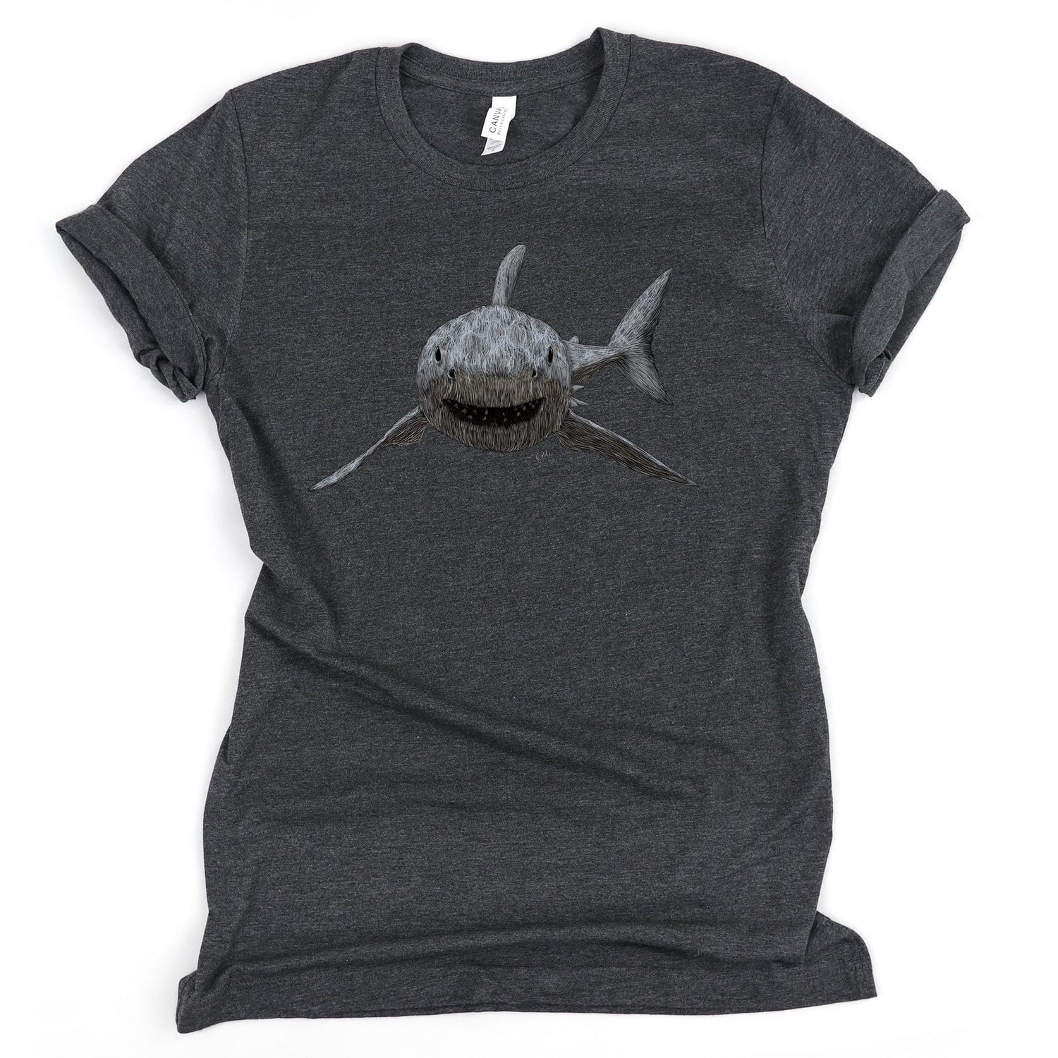 Did you know that great white sharks are very curious, and will often approach boats and pop their heads up out of the water to see what we are? This shirt is not curious, but it is still soft! Show your love for these sharks without the worry of getting nibbled.
