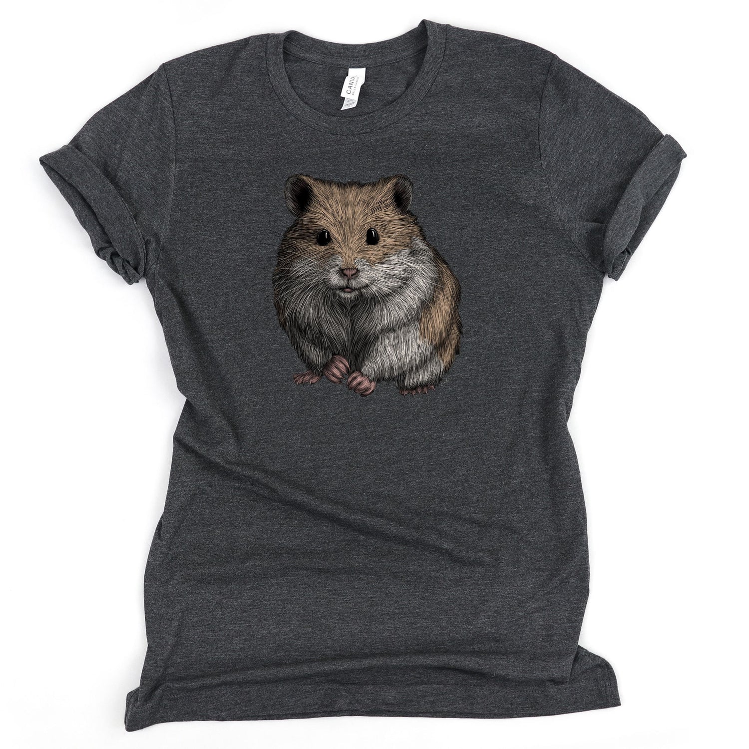 Did you know that not only do the cheek pouches on hamsters work to store food up to an amount equivalent to their body weight, but they can also fill the pouches with air so that they can float on water? Unfortunately, these shirts don't have cheek pouches, but they are still cute. Show your love for these smart rodents with this unique design.