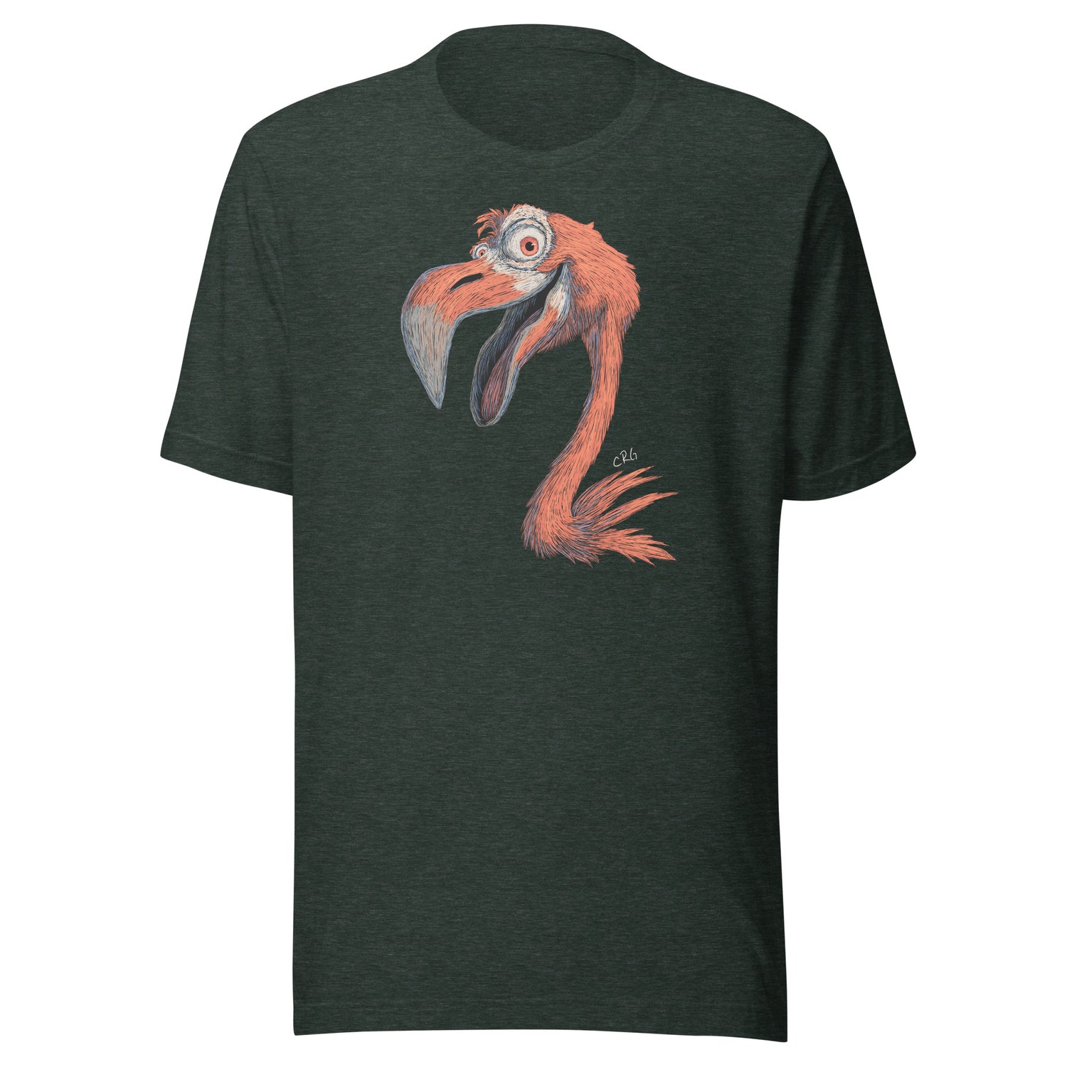 Did you know that the tallest of the flamingo species can measure up to 5 feet when standing upright? Their legs can be as long as 50 inches. Luckily this shirt is not that tall!