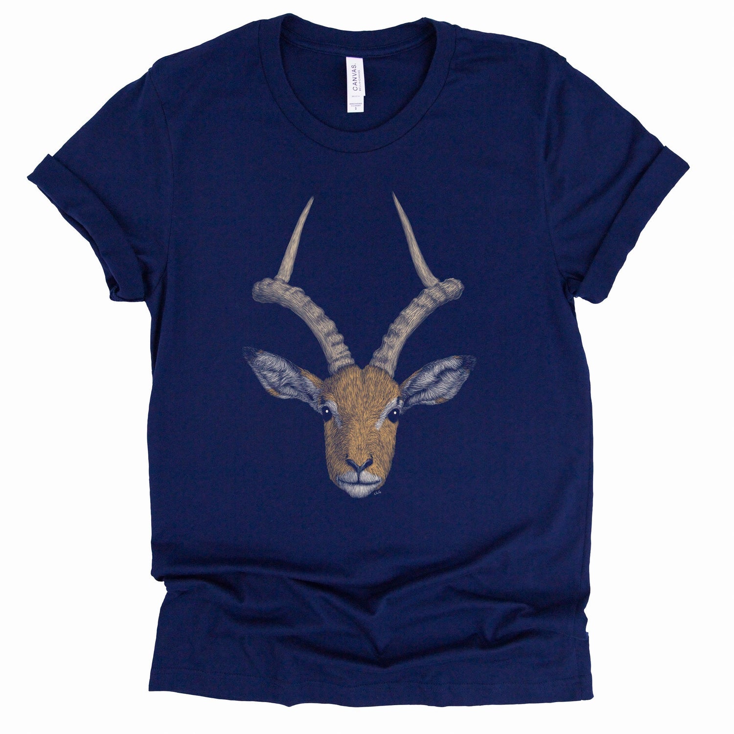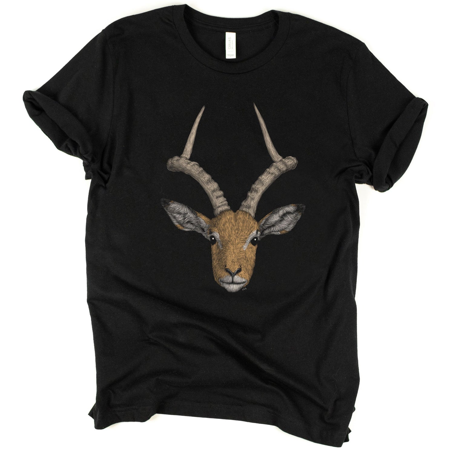 Did you know an impala antelope can leap a distance of up to 33 feet? Luckily this shirt can't leap at all. Show your love for this agile antelope without the worry of having enough for them to graze on.