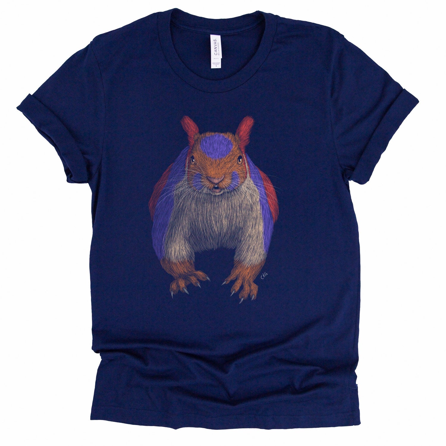 Did you know that Indian giant squirrels will make several large, globe shaped nests in multiple areas? Luckily, this shirt doesn't make a nest. Show your love for this shy, and colorful, squirrel without the worry of needing to climb on fragile tree branches.