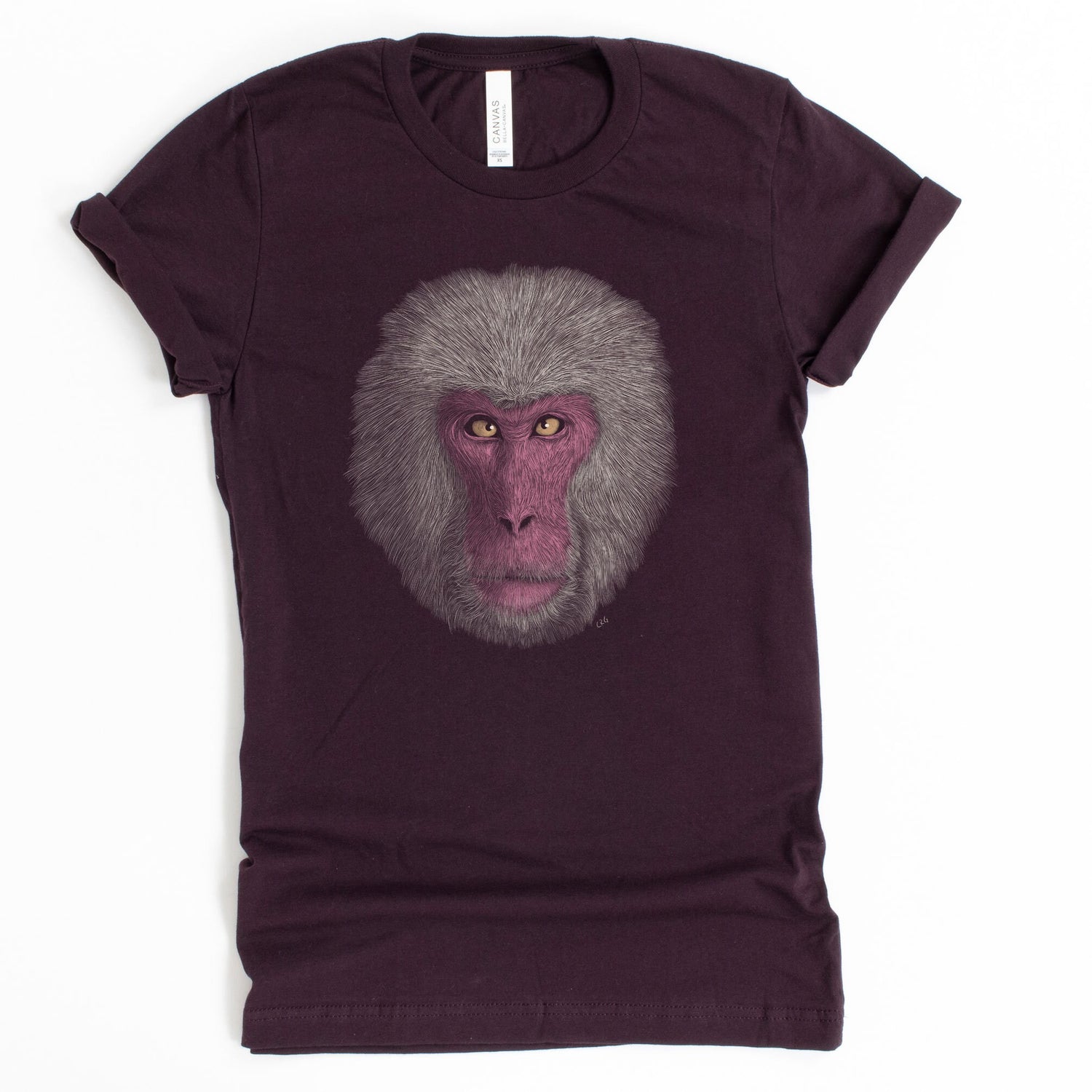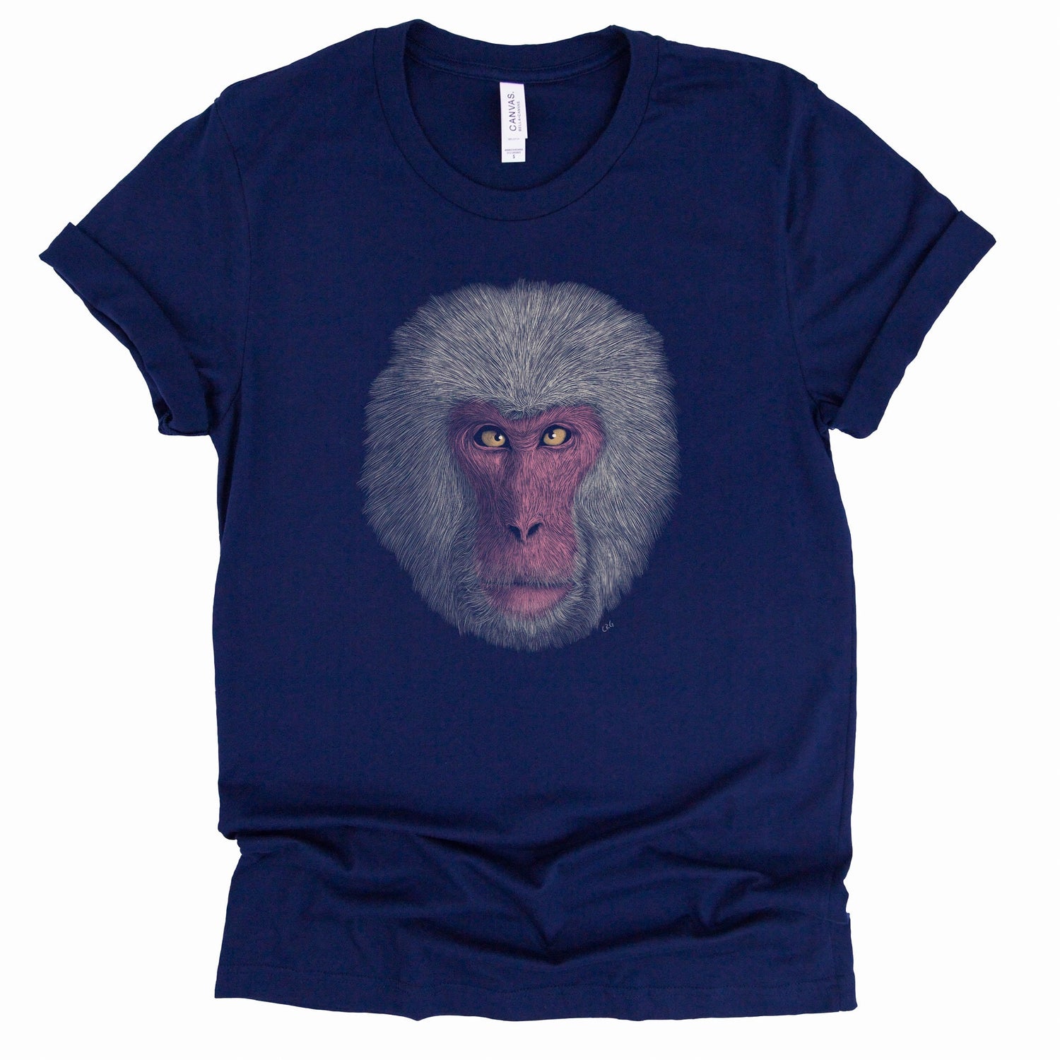 Did you know that one group of snow monkeys wash their food before eating it? It started with one female years ago who taught that behavior to the rest of her family. Even years after her death, the group still washes their food--suggesting that Japanese macaques are capable of developing their own cultures. This shirt doesn't wash it's food, or eat for that matter! Show your love for this unique primate without the worry of their rock banging keeping you up.