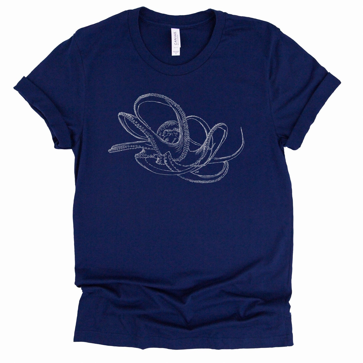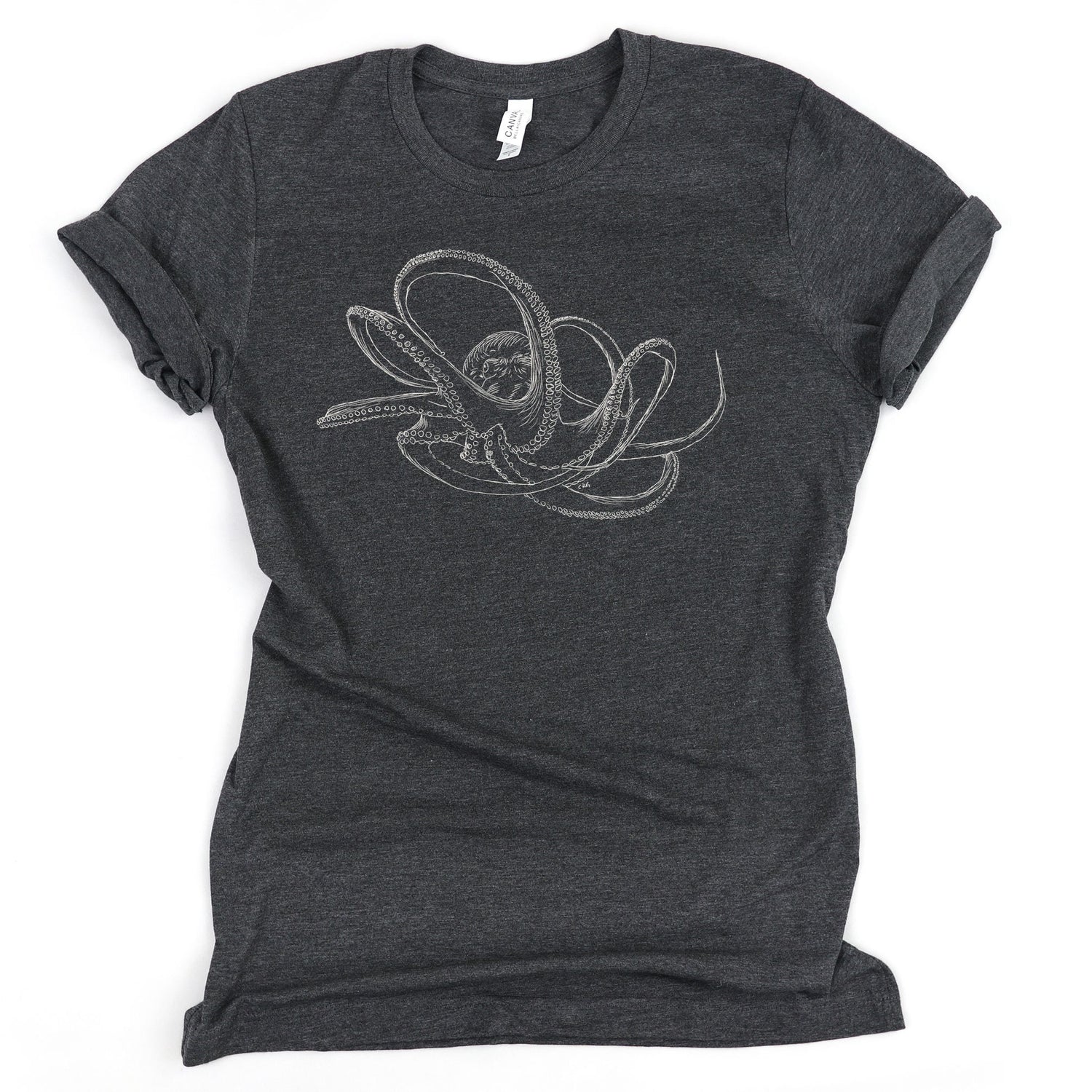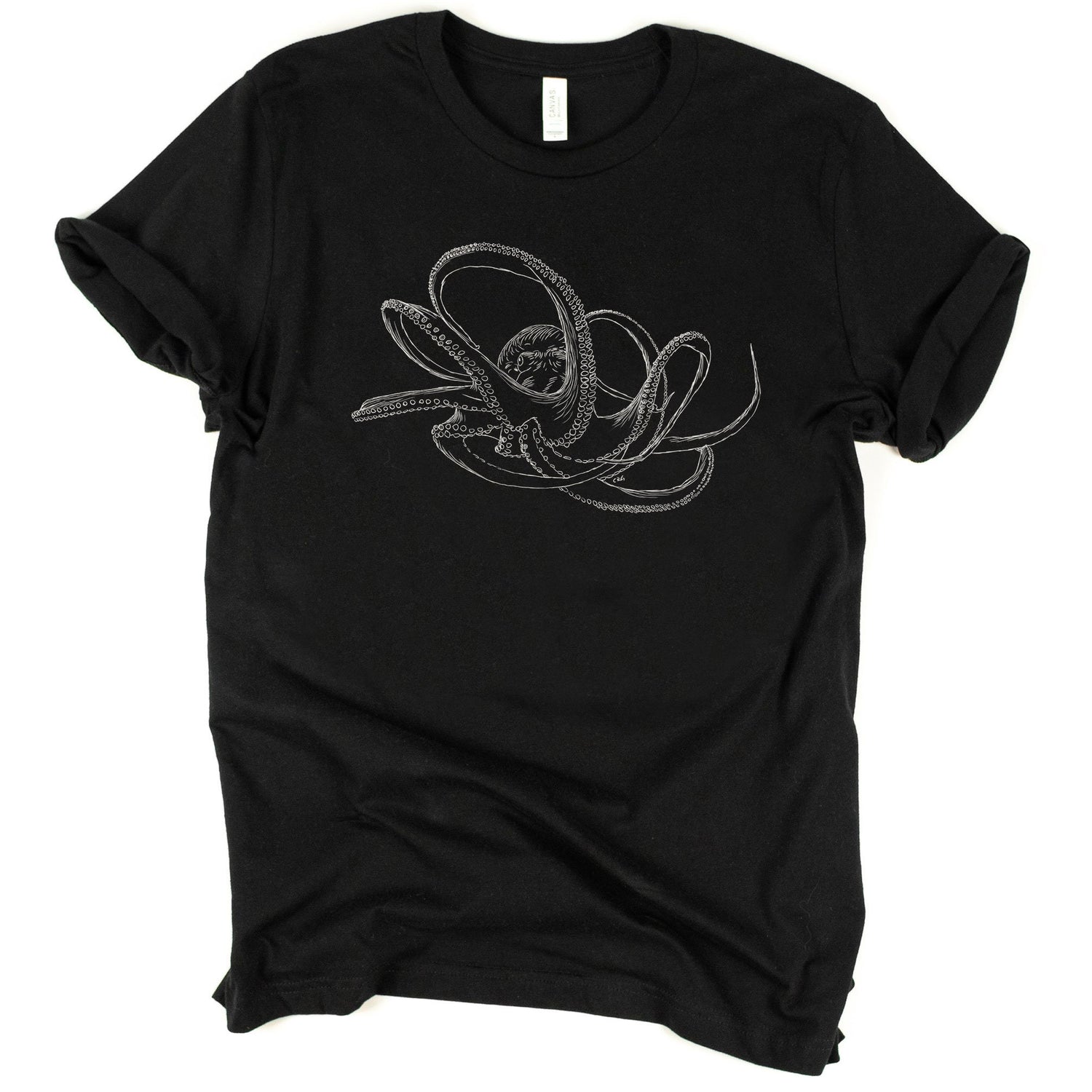 Did you know octopuses have been observed using tools? This shirt can't use any tools, but it is still very soft! Show your love for these highly intelligent animals without the fear of getting ink everywhere.