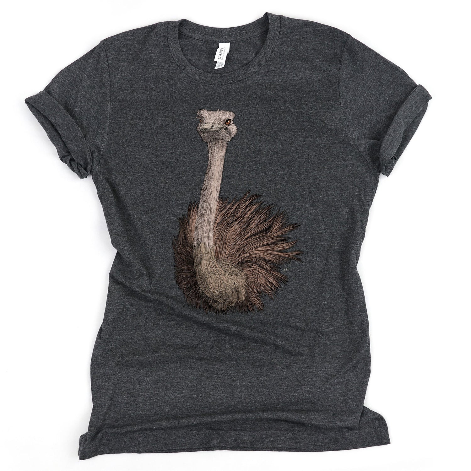 Did you know ostriches can run at speeds up to 43 mph, and cover up to 16.4 feet in a single stride? Luckily, this shirt can't run that fast, or at all! Show your love for the fastest land runner of all the birds without the fear of being left behind.