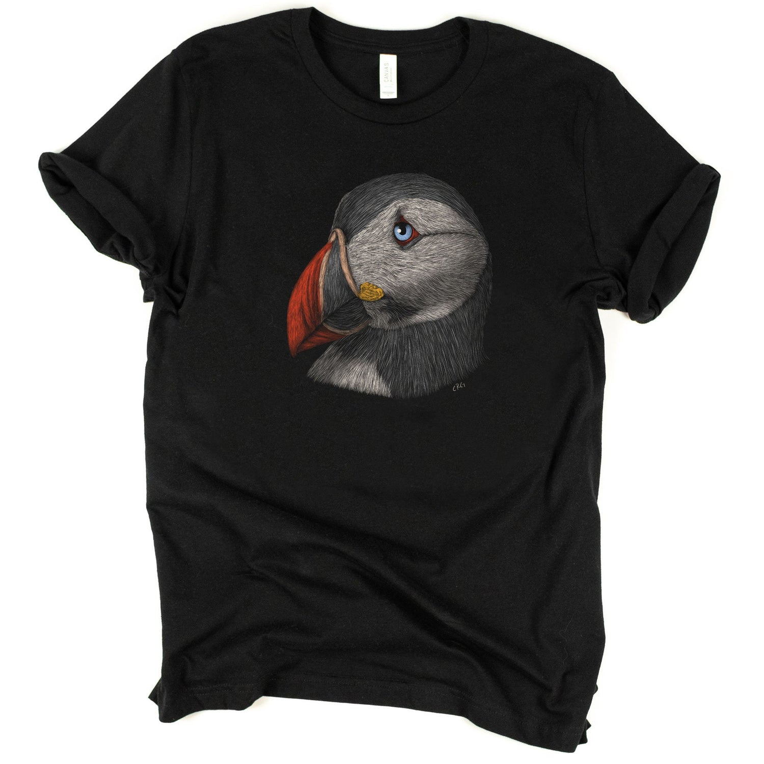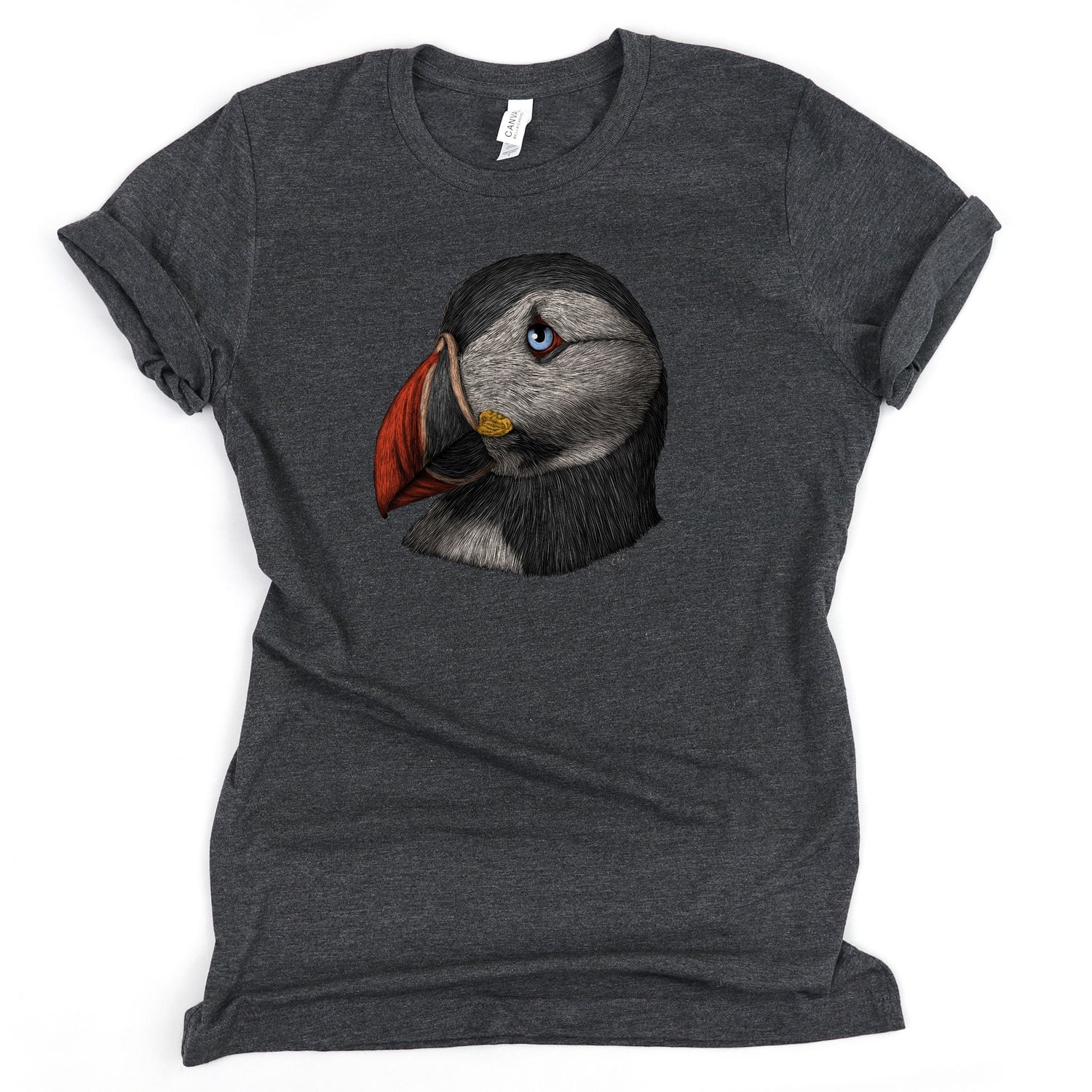 Did you know that puffins only grow to be about 10 to 13 inches tall? This shirt is not as cute as a puffin, but it is still very soft! Show your love for these unique birds without the worry of finding fish everywhere.