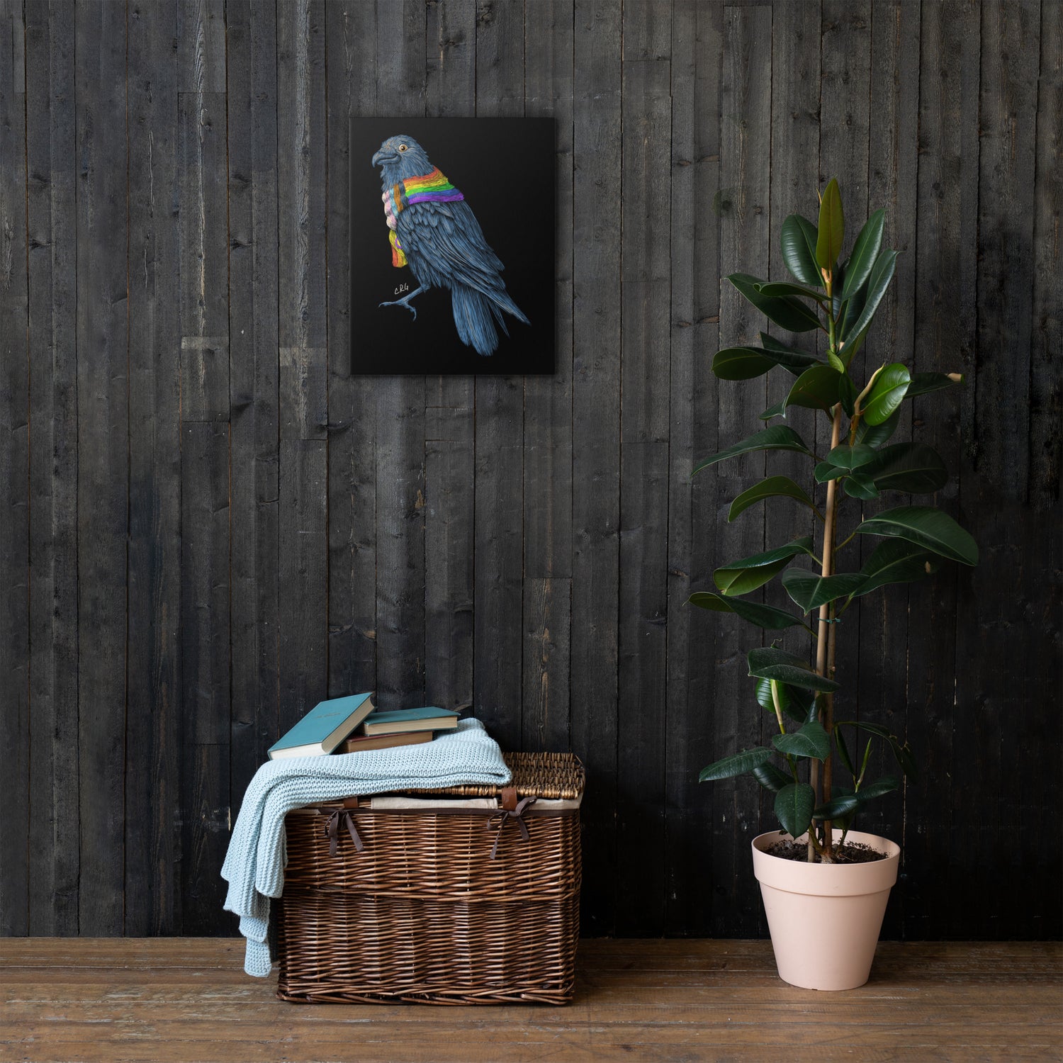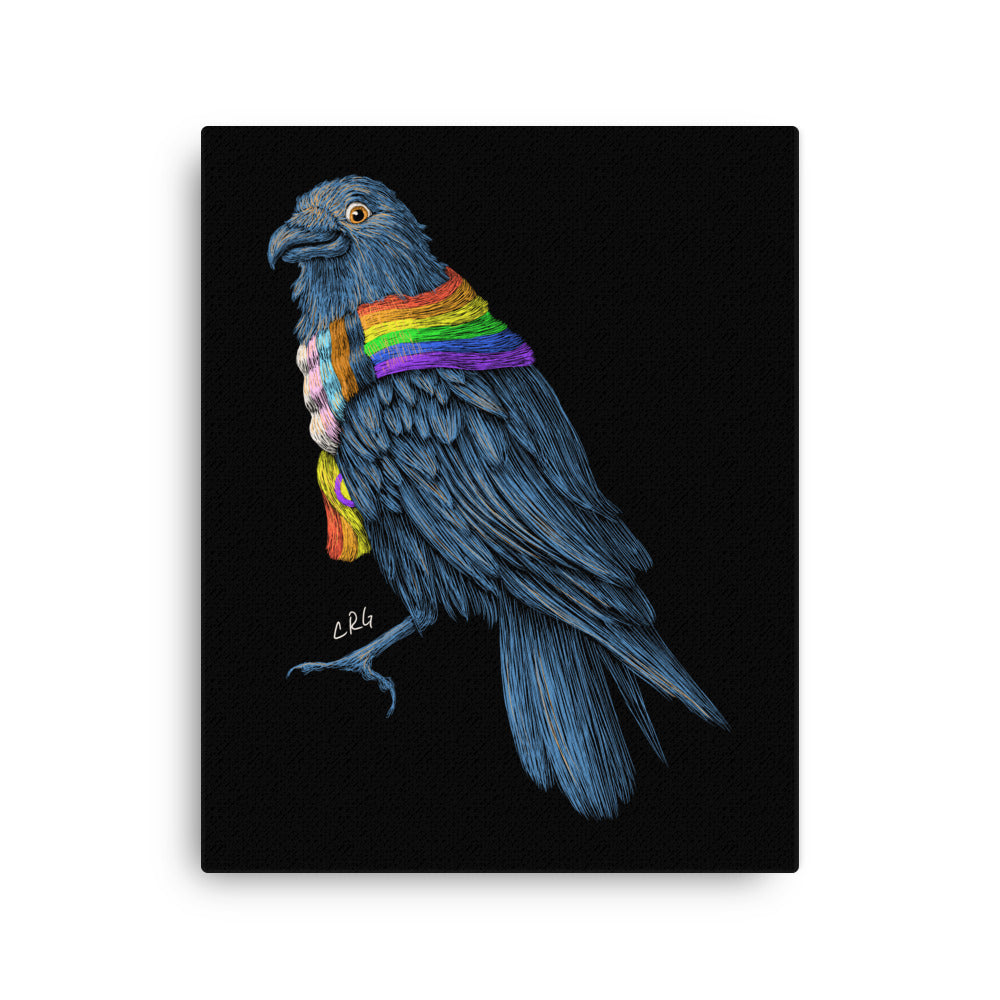 Raven with Pride Scarf Canvas Art Print