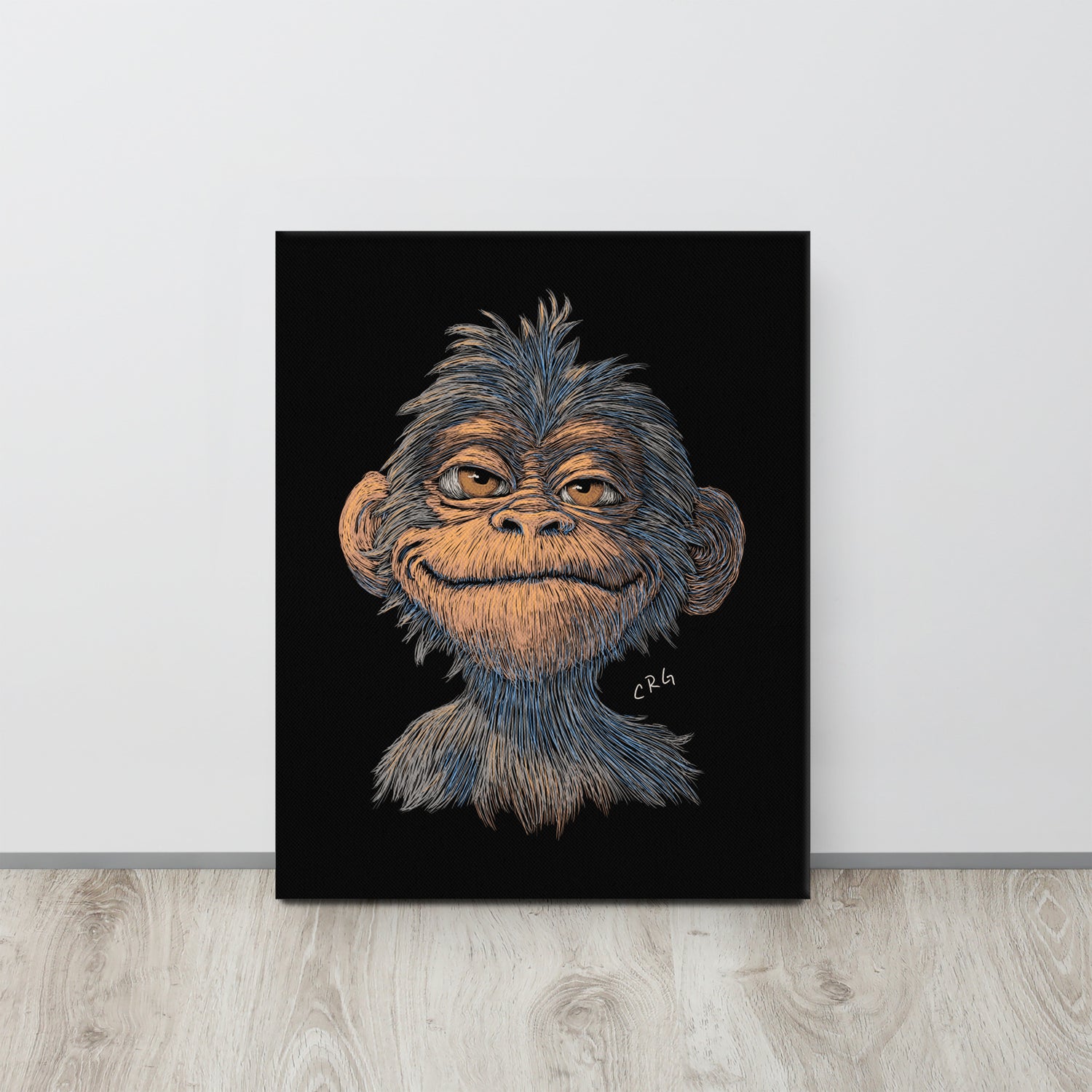 Did you know that human toddlers between the ages of 12 months and 24 months share up to 90% of the same gestures used by chimpanzees, suggesting that these same gestures were used by the last common ancestor of both species? Luckily, this chimp art print doesn't make any gestures at all!