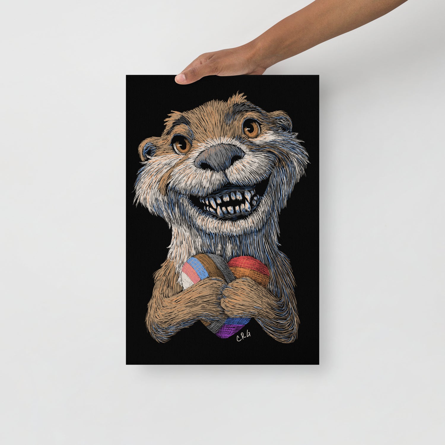 This happy otter is hugging a pride plushie heart.