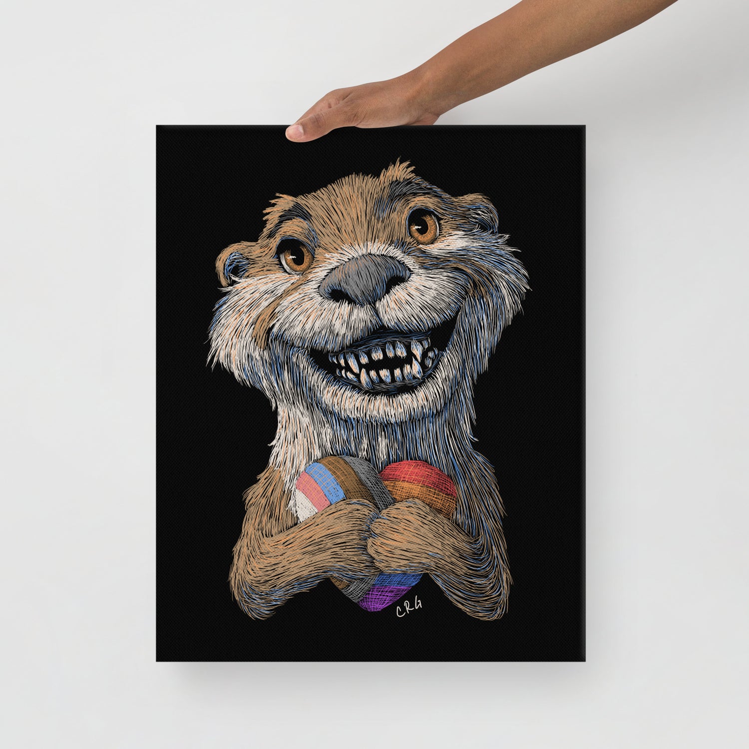 Smiling Otter with Pride Flag Heart Plushie Canvas Art Print