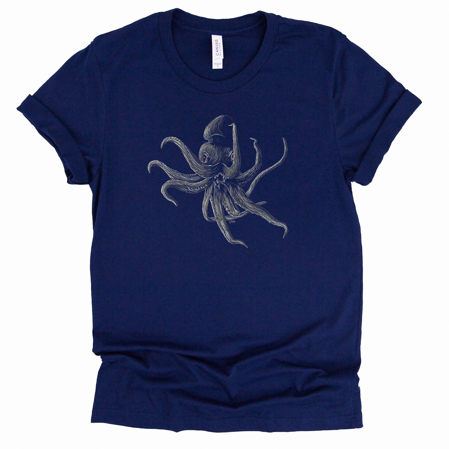 Did you know that giant squid have the largest eye to body ratio of any other animal on the planet? Luckily, this shirt doesn't have real eyes. Show your love for these elusive deep sea animals without the fear of getting entangled in its tentacles.
