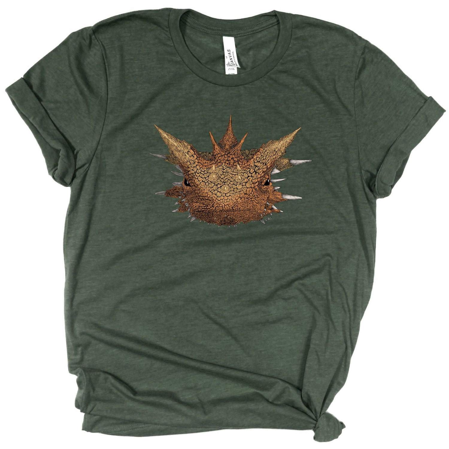 Did you know that a thorny devil's thorns not only protects them from predators, but also collects water from dew and rain allowing them to stay hydrated? Luckily, this shirt has no thorns! Show your love for these lizards without the fear of needing to stock up on ants for them to eat.